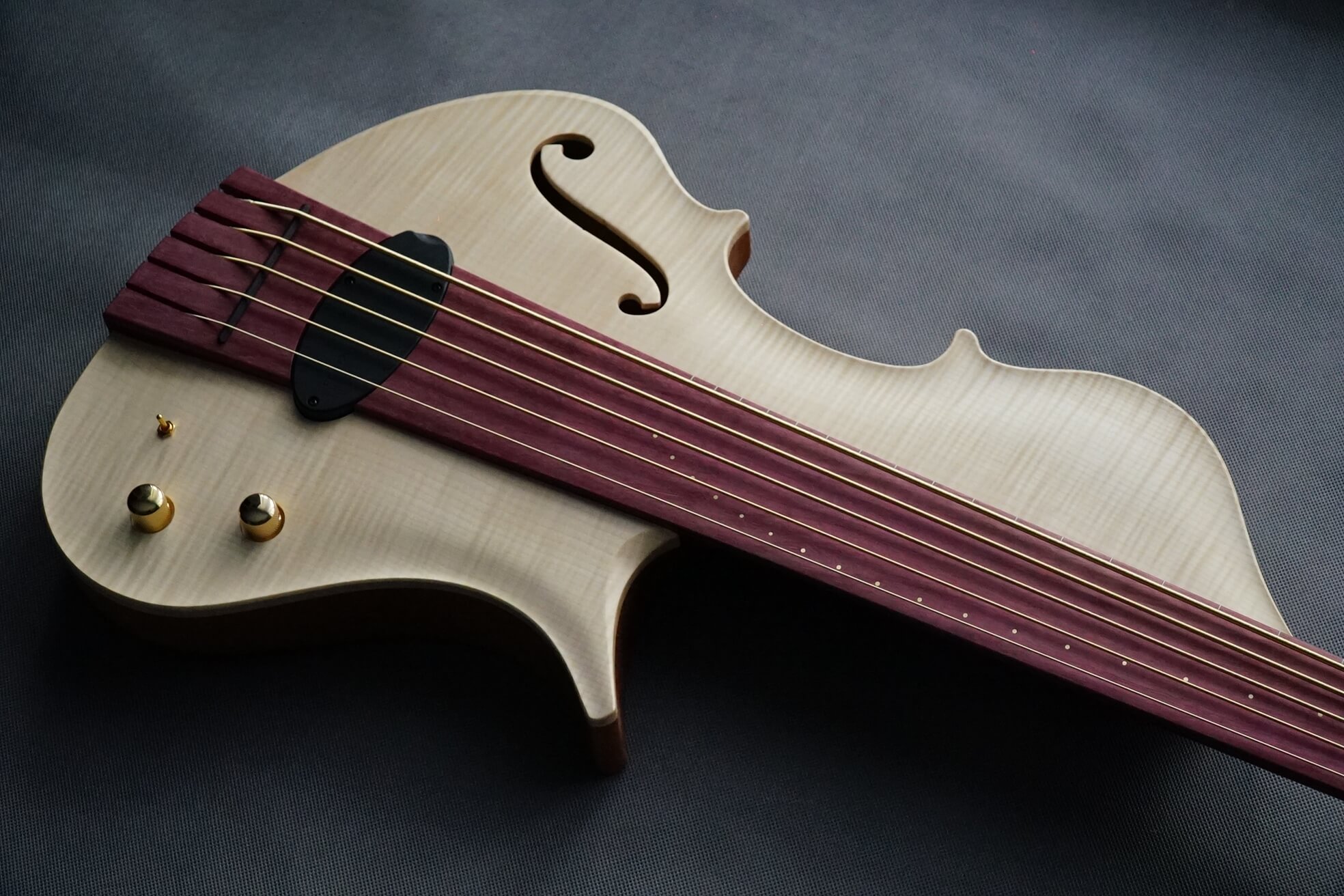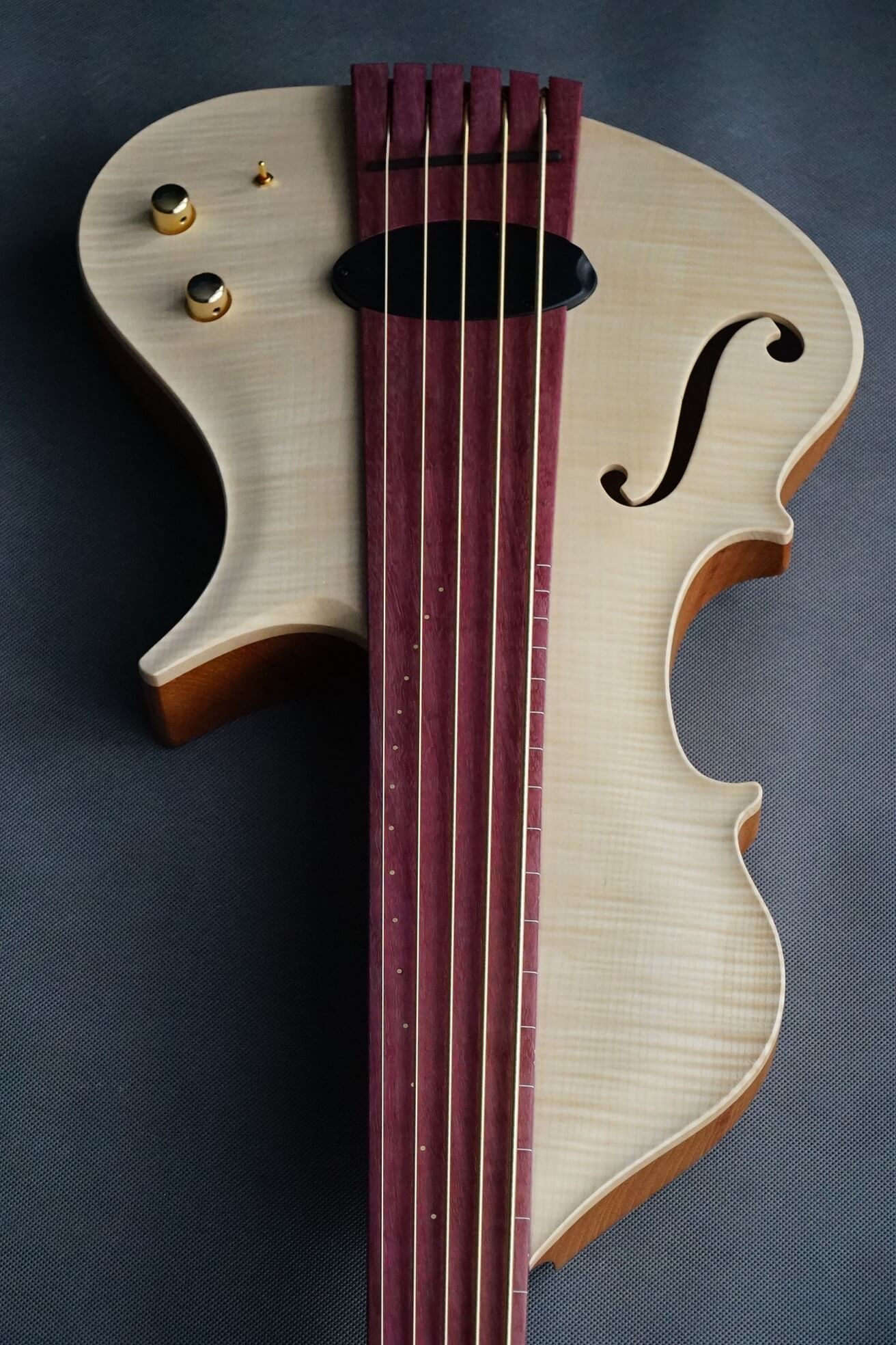 Symphony Aurora combines the 2 shades that goes together especially well – purple and gold. This simple form gives variety of sounds with Delano Xtender magnetic pickup with 3 different sounding setups, combined with warm and rich sounding piezo system. Deeply chambered spanish cedar body, crabon tubes reinforced purpleheart neck with ultralite Gotoh Stradi tuners make sure that the sound depth, stability and ballance are simply extraordinary in this instrument.