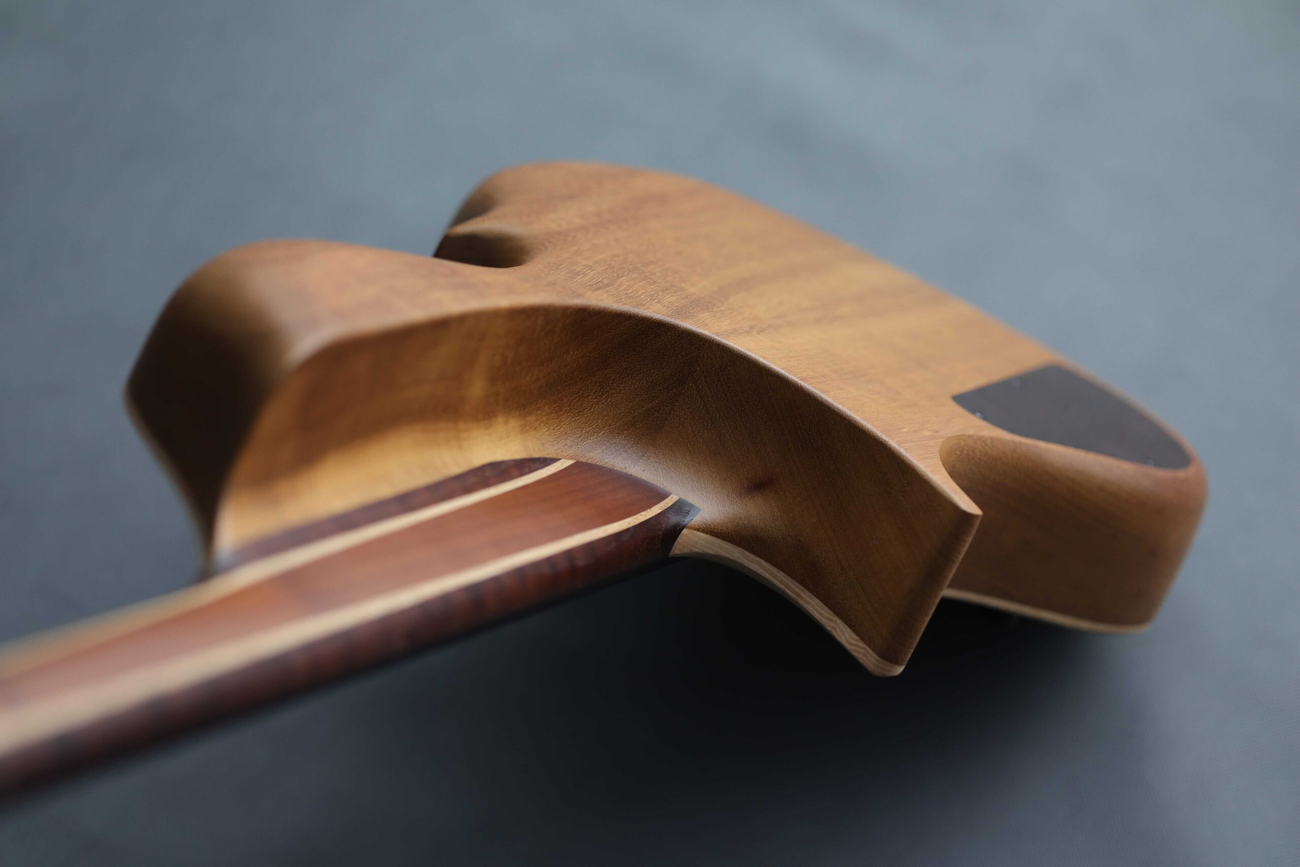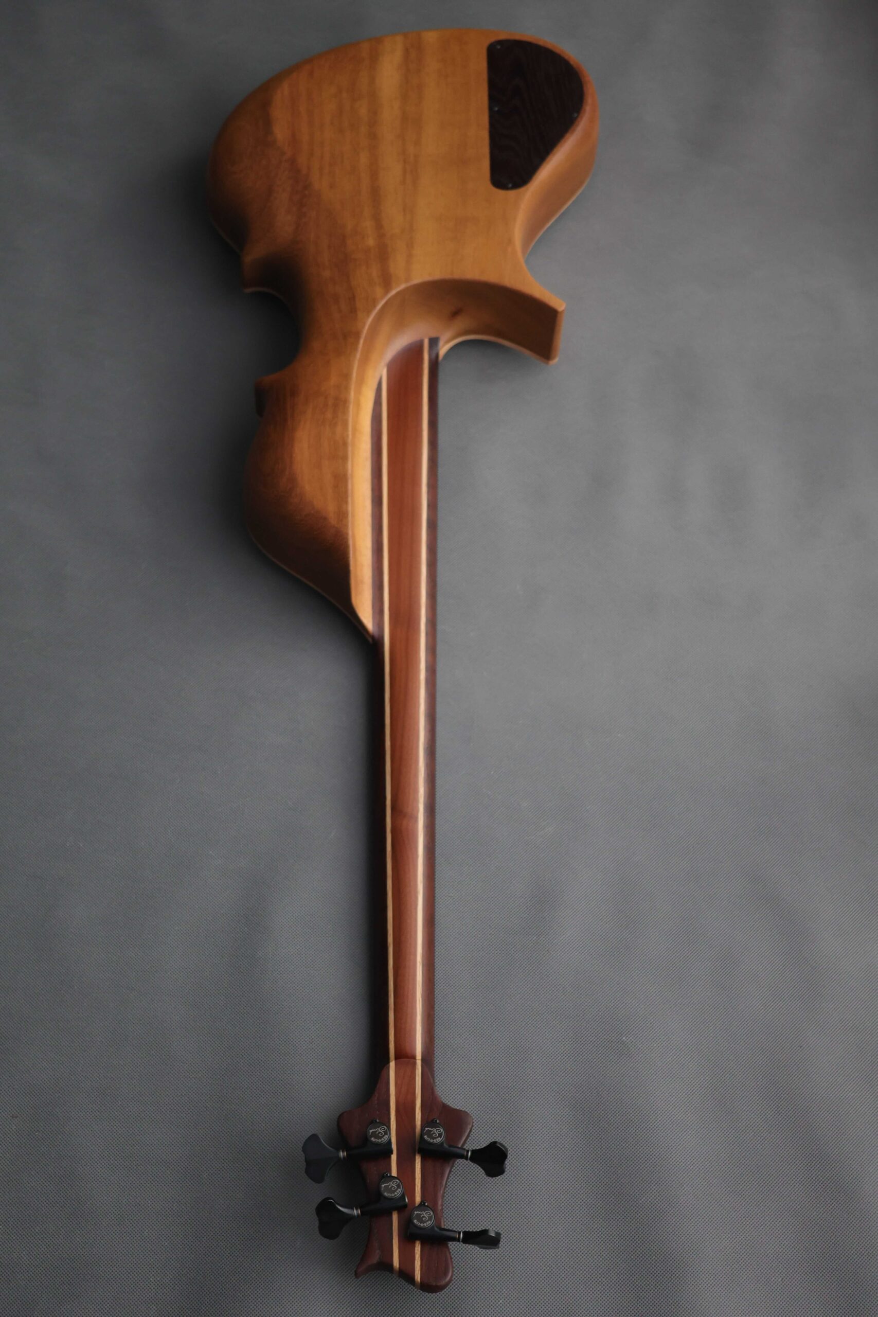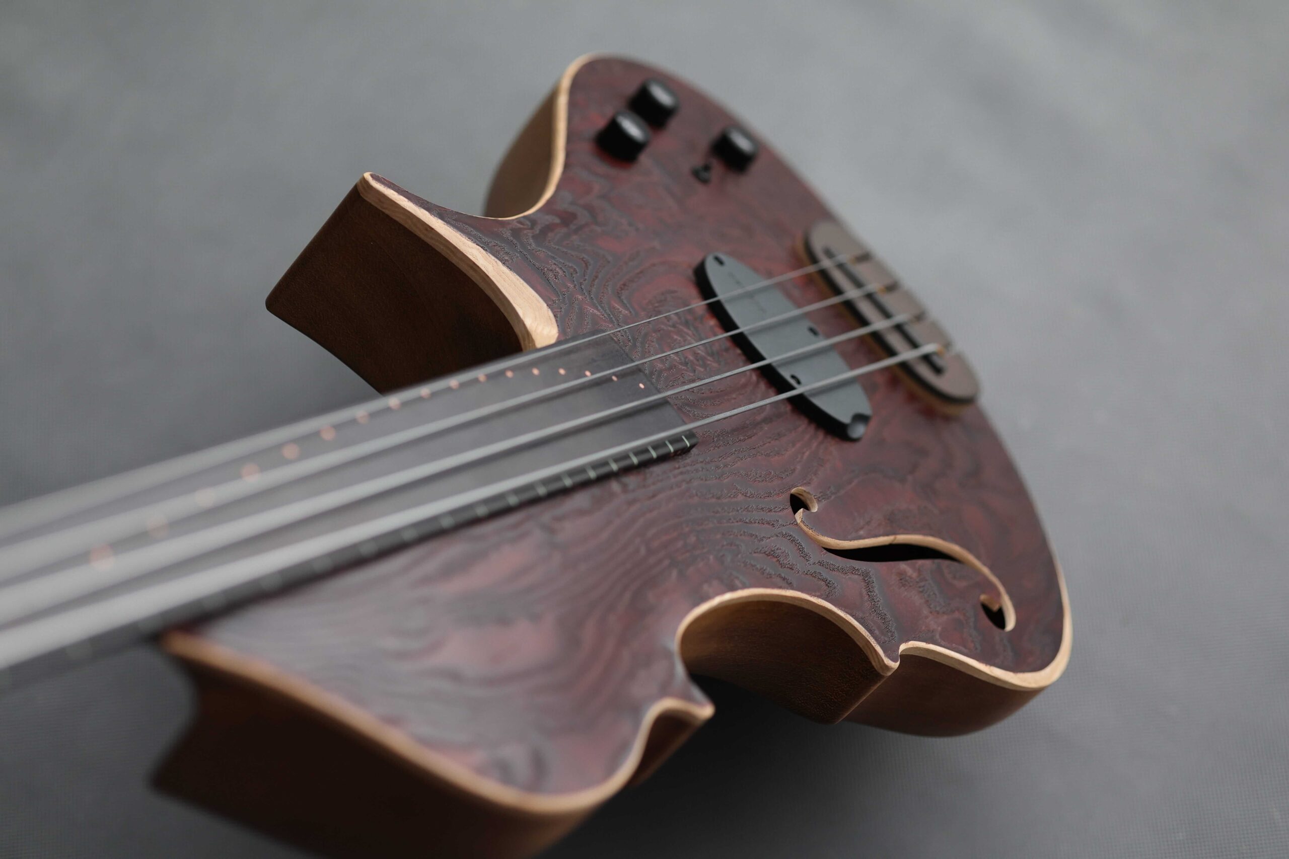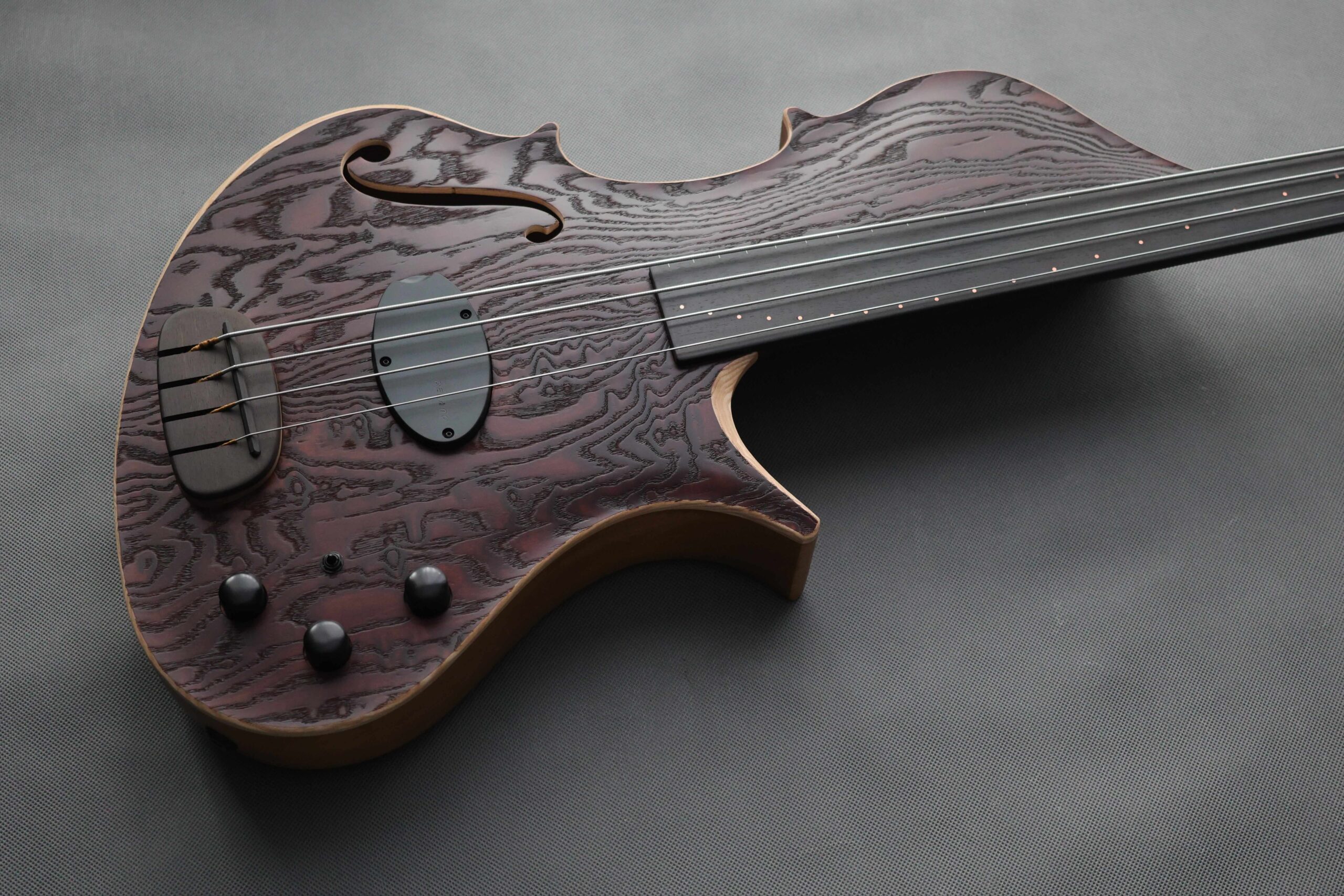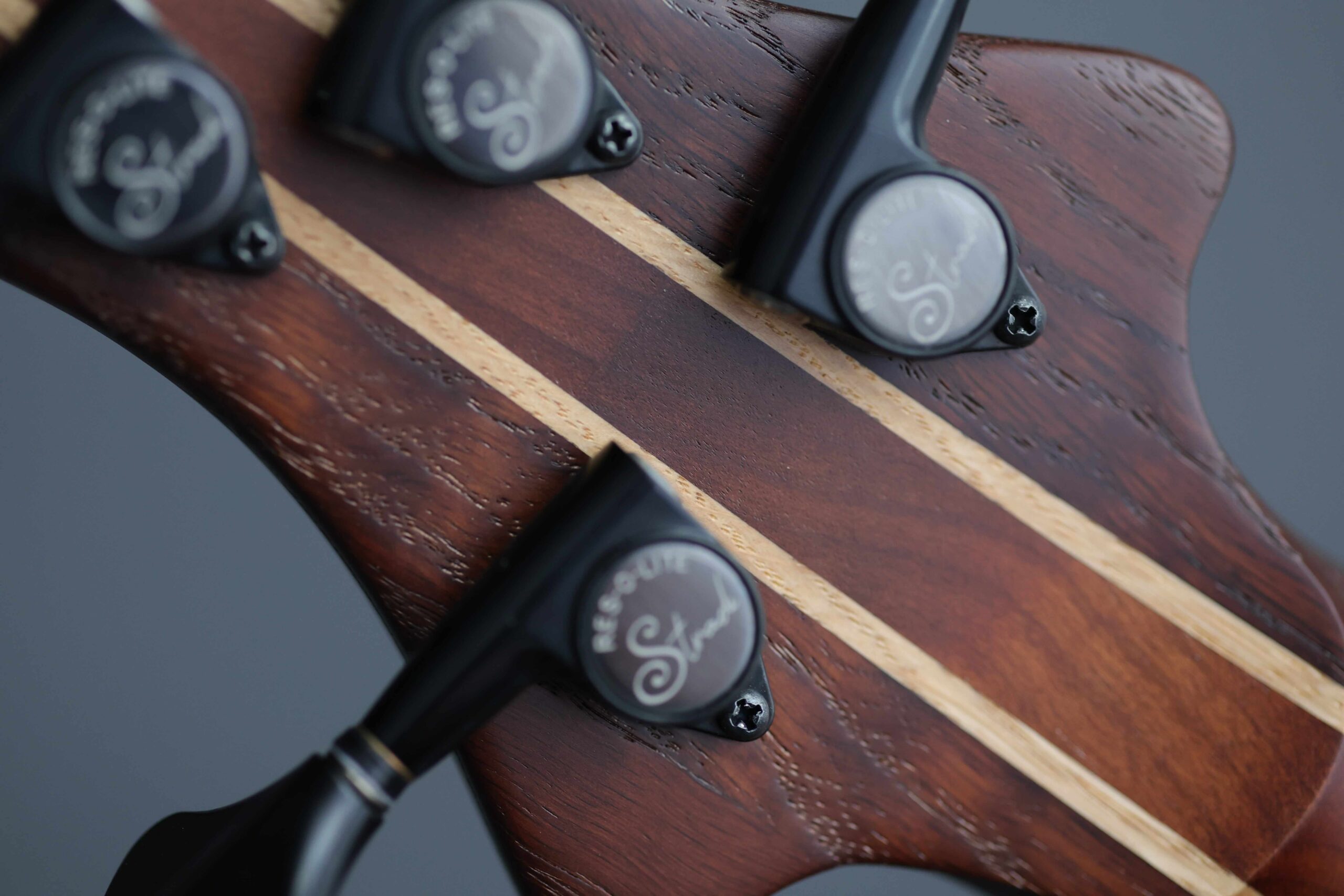 Prepared for the NAMM Show, the Big Mumma 4 is a bass with a voice that is deep, sweet, and effortlessly inspiring. Built around a fully hollowed, ultra-deep iroko body, it resonates freely, breathing warmth and openness into every note. A stained tamo ash top adds visual rhythm and contrast, while the roasted maple and oak neck flows naturally into an ebony fingerboard and matching ebony bridge, forming a coherent, elegant whole.